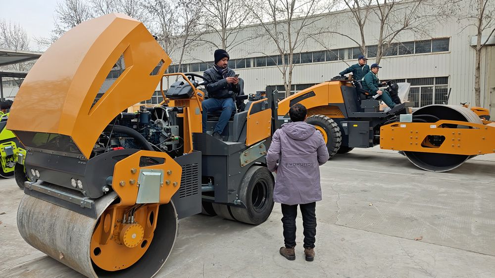 12月24日,某國外客戶2人來我廠參觀考察,在工作人員的陪同下,參觀了我廠生產車間與展廳并試駕小型壓路機,詳細向業務人員了解各個型號的配置與參數,對我廠生產的壓路機、移動照明車,滑移裝載機等產品表現出濃厚興趣,初步達成合作意向